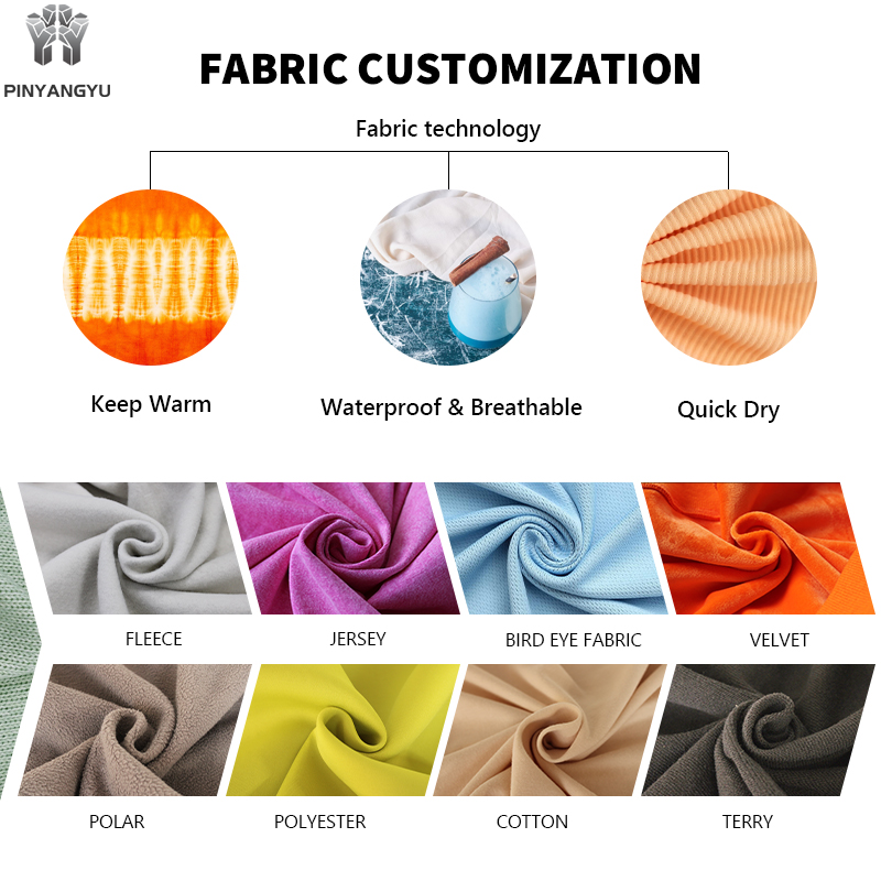 · Opções de tecidos personalizados (lã, felpa, jersey, etc.)